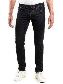Jean, 5 poches, fil de piquage couleur tabac (traditionnel). Braguette Zip autoblocant. Rivets de renfort aux angles de poches. 2 poches dos plaquées plus une 6eme poche signature. Fitting : Coupe droite-ajustée (jeans moins collé aux cuisses, bas plus droit que la coupe ajustée). Mesures...