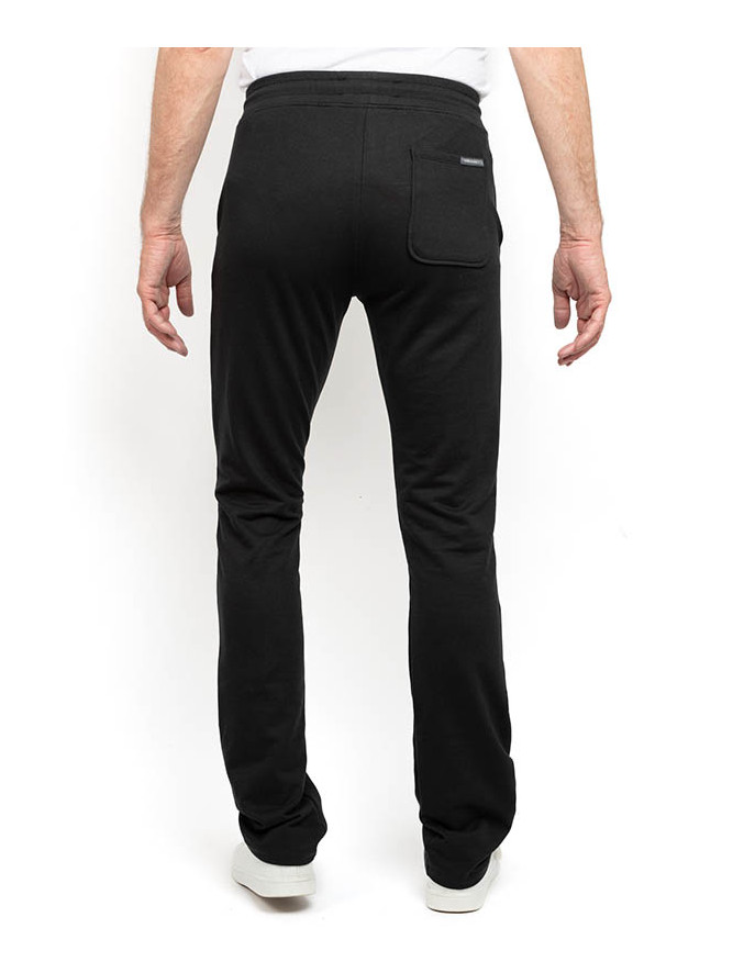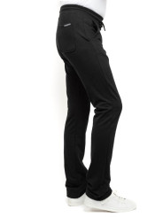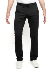Jogging pants with elasticated waistband and drawstring. 2 side pockets. 1 back pocket. Straight hem.