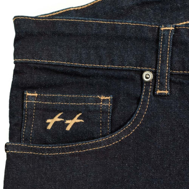 Jeans, 5 pockets, tobacco thread stitching (traditional). Self-locking zip fly. Reinforced rivets at pocket corners. 2 back patch pockets and a 6th signature pocket. Fit: Adjusted fit (close to the leg and tightened hem). Measurements conform to standard CUB sizes. Traceability and...