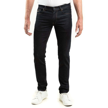 Jeans, 5 pockets, tone-on-tone stitching (trousers effect). Self-locking zip fly. Reinforced rivets at pocket corners. 2 back patch pockets plus a 6th signature pocket. Fitting: Adjusted fit (close to the leg, and tightened hem). Measures in line with standard CUB sizes. Care : Overdyed...