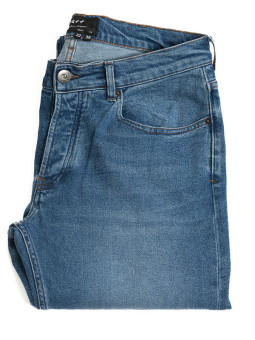 Jeans, 5 pockets, tone-on-tone stitching. Zip fly. No rivets but reinforced stitching on pocket corners. 2 patch back pockets plus a 6th signature pocket. Fitting : Slim fit.  Traceability and environmental characteristics: CUB is as vigilant as possible throughout the manufacturing and...