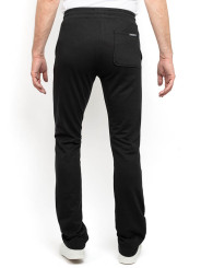 Jogging avec ceinture élastiquée ajustable par cordon. 2 poches coté. 1 poche dos. Bas de jambe droit.