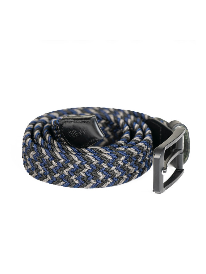Ceinture tressée élastique pour homme. Cette magnifique ceinture tressée au look décontracté s'associe facilement grace à son mélange de couleurs intemporelles (gris, noir, bleu).