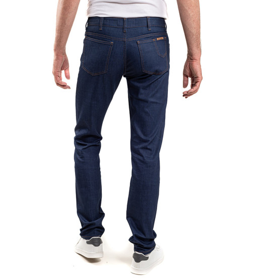 Modèle : Wilde Jeans, 5 poches, couture ton sur ton (façon pantalon). Braguette boutons (traditionnelle). Double patte de boutonnage ceinture. Rivets de renfort aux angles de poches. Coupe : Coupe droite (près de la jambe et ourlet resserré). Mesures conformes aux tailles standards CUB....