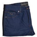 Jean, 5 poches, fil de piquage couleur tabac (traditionnel). Braguette Zip autoblocant. Rivets de renfort aux angles de poches. 2 poches dos plaquées plus une 6eme poche signature. Fitting : Coupe droite-ajustée (jeans moins collé aux cuisses, bas plus droit que la coupe ajustée). Mesures...