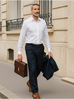 Look classique : associez le Chino Victor Noisette avec une chemise blanche ou bleu ciel pour une allure élégante et professionnelle.