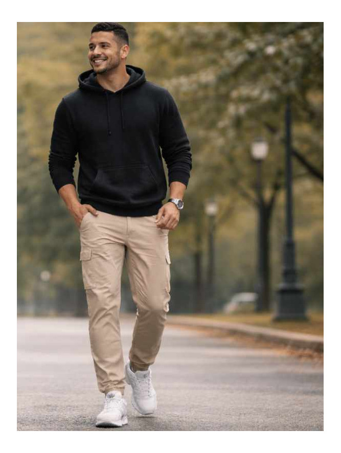 • Look affirmé : sweat ou hoodie structuré, veste technique ou manteau long pour un contraste moderne.